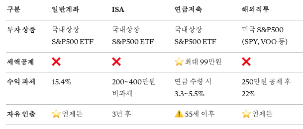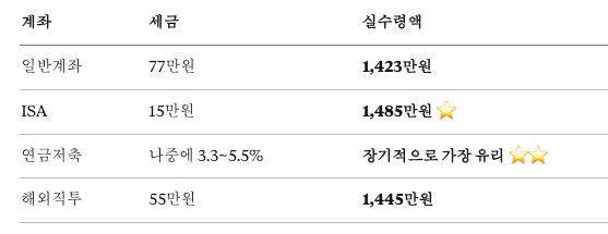 → ISA 계좌 (일반계좌보다 훨씬 유리)