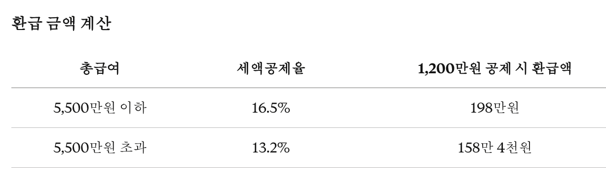 - 총급여 5,000만원 이하 / 종합소득 3,800만원 이하